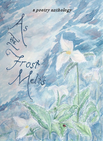 Hello everybody! I hope you all enjoyed this month’s episode of In Sunlight and Frost. I have another commercial/ announcement for a project I am helping promote. Currently, I am a member of the street team for a poetry anthology entitled As The Frost Melts. I’m a little late on getting this cover reveal released but hope you all enjoy it all the same.